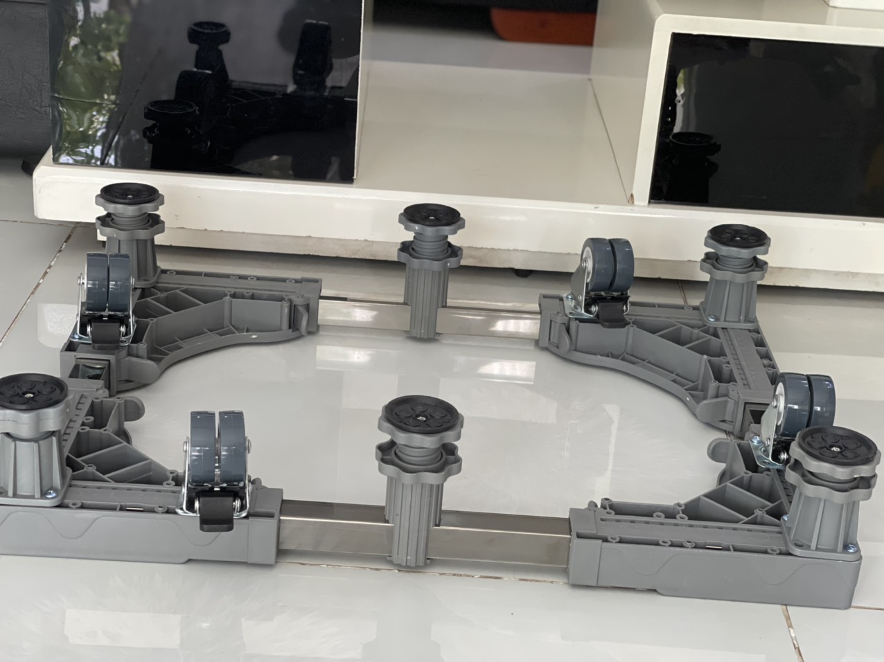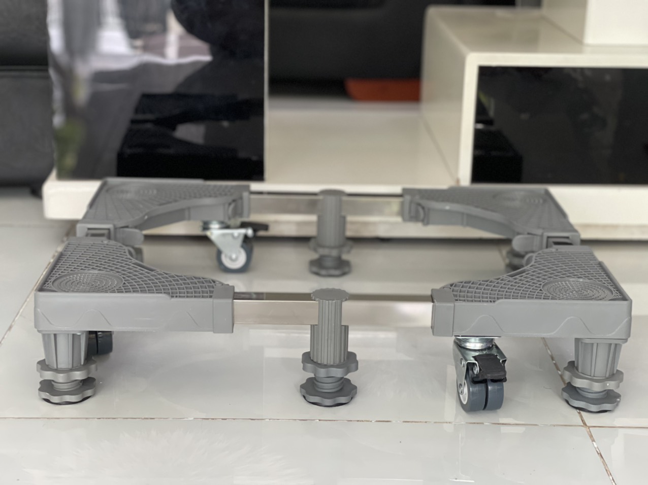 Sau đây chúng tôi xin giới thiệu đến quý khách hàng sản phẩm chân kê máy giặt, tủ lạnh cao cấp nhập khẩu loại 6 chân trụ và 4 bánh xe đôi ( 8 bánh xe)