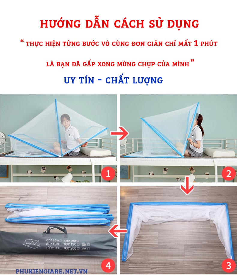 – Mùng chụp cho gia đình, mùng chụp tự bung cao cấp. Chúng vô cùng tiện dụng vì tiết kiệm thời gian và công sức.